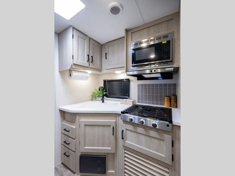 Sleeps 3 Length 25 ft 11 in Ext Width 8 ft Ext Height 11 ft 1 in Int Height 6 ft 9 in Hitch Weight 558 lbs GVWR 6127 lbs Dry Weight 4627 lbs Cargo Capacity 1500 lbs Fresh Water Capacity 44 gals Grey Water Capacity 40 gals Black Water Capacity 30 gals Furnace BTU 30000 btu Available Beds Queen bed Refrigerator Type 12V GE Stainless Refrigerator Size 10.7 cu ft Cooktop Burners 3 Shower Size 36 x 30 Number of Awnings 1 LP Tank Capacity 20 lbs Water Heater Type Tankless On Demand AC BTU 13500 btu Awning Info 18' Electric w/Multicolored LED Light Strip and Remote Axle Count 2 Number of LP Tanks 2 Shower Type Standard Electrical Service 30 amp Similar Floorplans