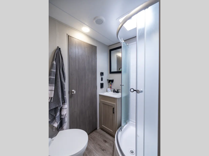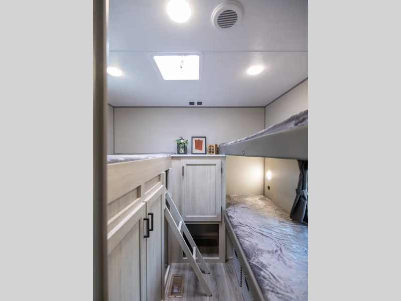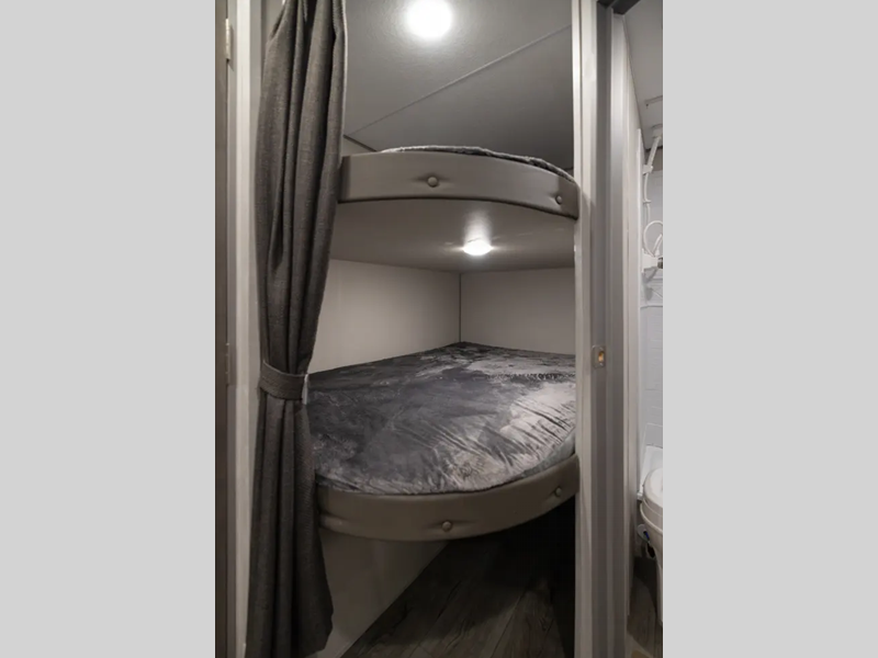 Sleeps 9 Slides 1 Length 33 ft 5 in Ext Width 8 ft Ext Height 11 ft 1 in Int Height 6 ft 9 in Hitch Weight 862 lbs GVWR 9962 lbs Dry Weight 6299 lbs Cargo Capacity 3663 lbs Fresh Water Capacity 44 gals Grey Water Capacity 40 gals Black Water Capacity 30 gals Furnace BTU 35000 btu Number Of Bunks 2 Available Beds Queen Refrigerator Type 12V GE Stainless Refrigerator Size 10.7 cu ft Cooktop Burners 3 Number of Awnings 1 LP Tank Capacity 20 lbs Water Heater Type Tankless On Demand AC BTU 13500 btu Awning Info 21' Electric w/Multicolor LED Light Strip & Remote Axle Count 2 Number of LP Tanks 2 Shower Type Tub/Shower Combo Electrical Service 30 amp Similar Floorplans