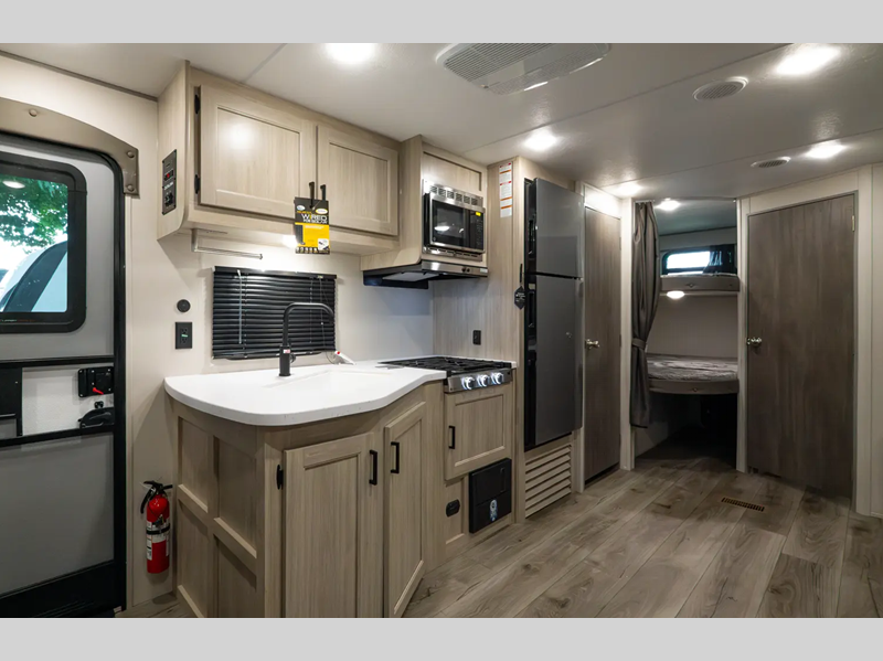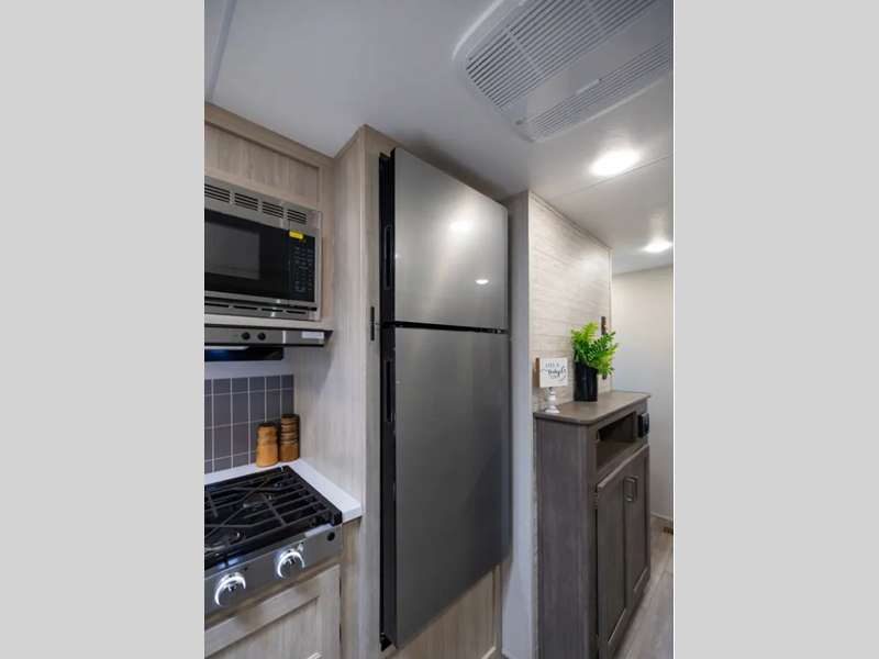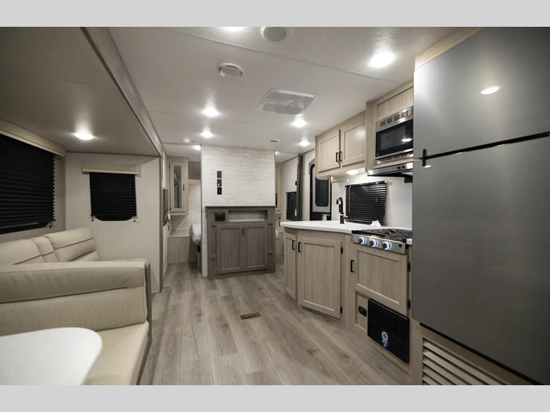 Sleeps 4 Slides 1 Length 28 ft 2 in Ext Width 8 ft Ext Height 11 ft 1 in Int Height 6 ft 9 in Hitch Weight 658 lbs GVWR 6700 lbs Dry Weight 5101 lbs Cargo Capacity 1559 lbs Fresh Water Capacity 44 gals Grey Water Capacity 40 gals Black Water Capacity 30 gals Furnace BTU 35000 btu Available Beds Queen Refrigerator Type 12V GE Stainless Refrigerator Size 10.7 cu ft Cooktop Burners 3 Shower Size 36" x 30" Number of Awnings 1 LP Tank Capacity 20 lbs Water Heater Type Tankless On Demand AC BTU 13500 btu Awning Info 18' Electric w/Multicolored LED Light Strip and Remote Axle Count 2 Number of LP Tanks 2 Shower Type Standard Electrical Service 30 amp Similar Floorplans