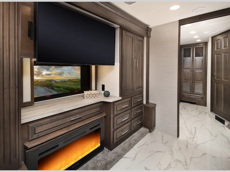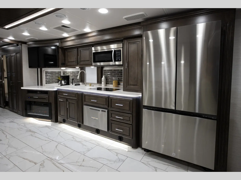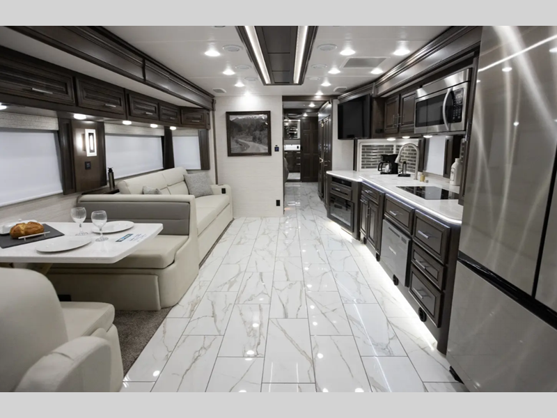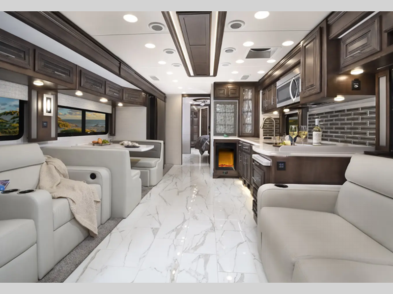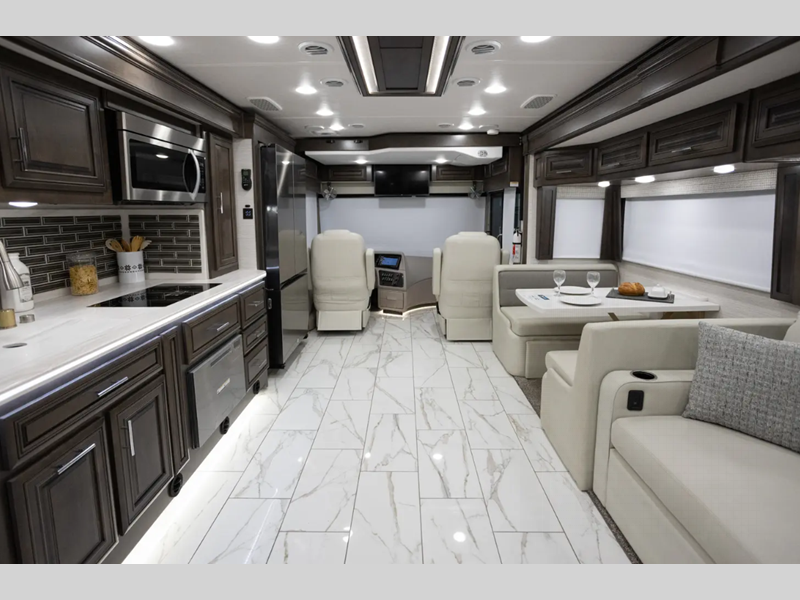 Your everyday needs will be exceeded with easy living interiors, modern décor, and an abundance of comfort. There is a front independent suspension and an optional rear V-Ride suspension system so you can carry more gear with a smoother ride and a more stable handling. Inside, you'll love the polished porcelain tile throughout and the hardwood raised panel cabinet doors, plus this coach is all electric to power you through many excursions!