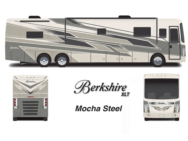 The Berkshire XLT Class A diesel motorhomes by Forest River offer an unending pursuit for precision and quality inside and out! Their level of luxury and performance is expected of a tag axle but with an unmatched value driven price.