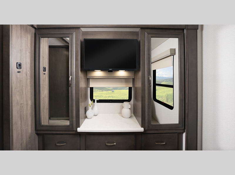 Experience a super smooth ride with the JRide Premium package built on these Jayco Seneca Prestige Super C diesel motorhomes! It is the most advanced driving and handling system with front and rear suspension for the ultimate diesel-powered driving experience.