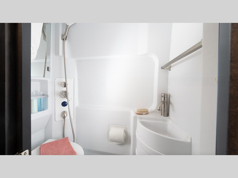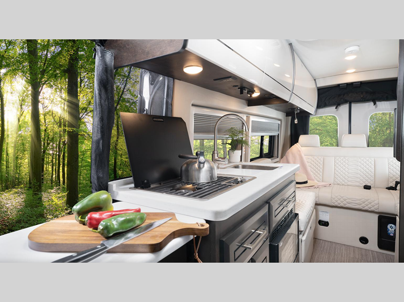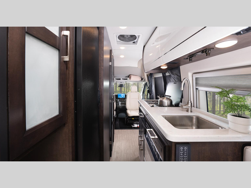 Sleeps 2 Length 22 ft Ext Width 7 ft 2 in Ext Height 10 ft Int Height 6 ft 6 in Interior Color Crown Point Exterior Color Silver GVWR 11000 lbs Fresh Water Capacity 24 gals Grey Water Capacity 14 gals Black Water Capacity 16 gals Tire Size 205/75R16C BSW All Season Furnace BTU 17000 btu Generator Onan 2800W Fuel Type Gasoline Engine 3.5L EcoBoost V6 Chassis Ford Transit AWD 350HD Horsepower 310 hp Fuel Capacity 25 gals Wheelbase 148 in Torque 400 ft-lb Refrigerator Type 12V Refrigerator Size 5.3 cu ft Convection Cooking Yes Cooktop Burners 2 Shower Size 25" x 46" Number of Awnings 1 LP Tank Capacity 20 lbs. Water Heater Type Truma Combi Eco Plus AC BTU 13500 btu TV Info LR 24" LED HD Smart TV Awning Info Carefree Armless with LED Lights Gross Combined Weight 13000 lbs Shower Type Wet/Bath Shower Electrical Service 30 amp
