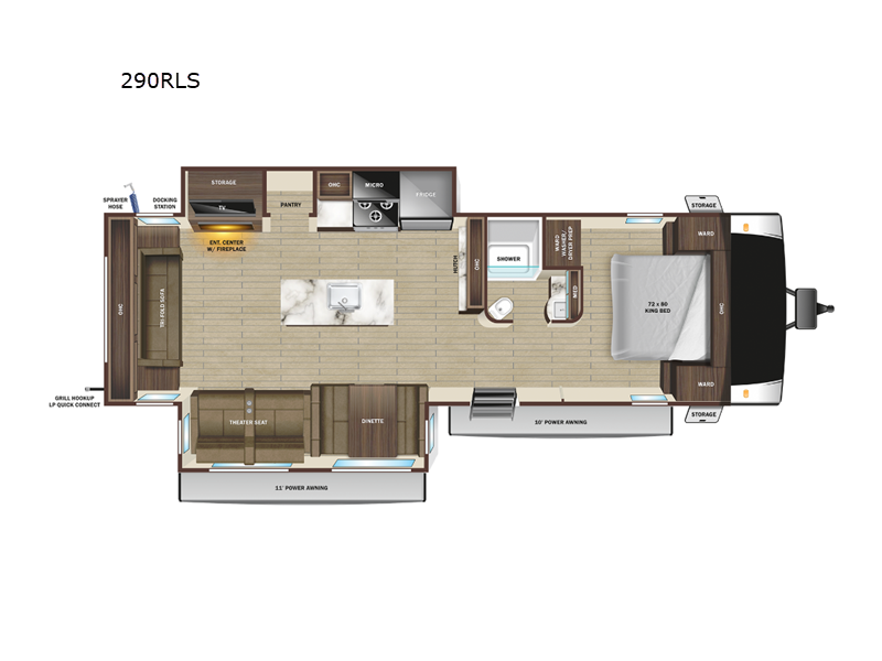 - 70" theater seats in place of standard tri-fold sofa (275RLS, 290RLS)